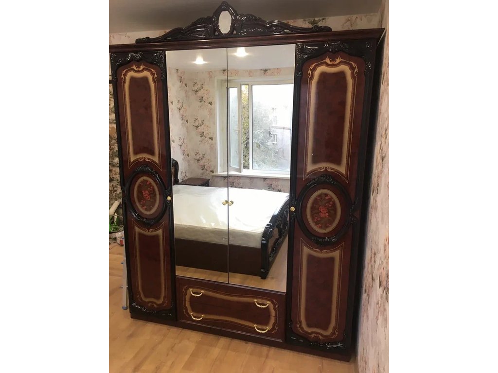 шкаф 4-х дверный с зеркалами Роза Dia могано