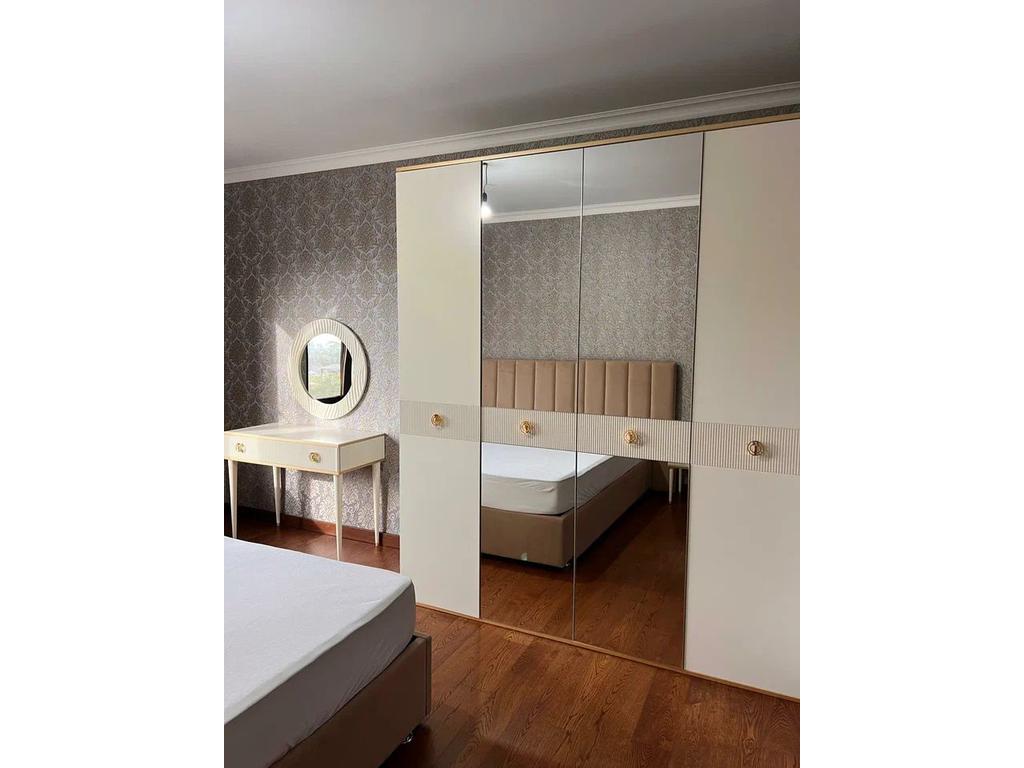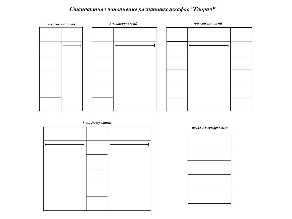 Стандартное наполнение: 2-х створчатое оделение по центру - полка/ штанга, отделения слева и справа - полки. Можно изготовить в цвете "ваниль с золотом".