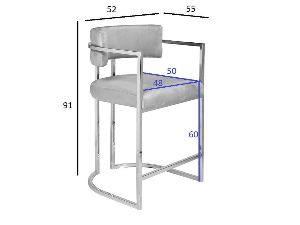 Дизайнерский барный серый стул с велюровой обивкой – стильное решение для обеденной зоны, кухни, столовой, студии с барной стойкой. Он прекрасно впишется в современные интерьеры ар-деко, минимализм, авангард, неоклассика, лофт, фьюжн. Сочетание дорогого велюра и блестящего металла придает модели особенного шика. При этом барный стул на металлическом каркасе весьма удобный в эксплуатации за счет небольшой спинки, подлокотников и ступеньки для ног. Вес: 10,46 кг.