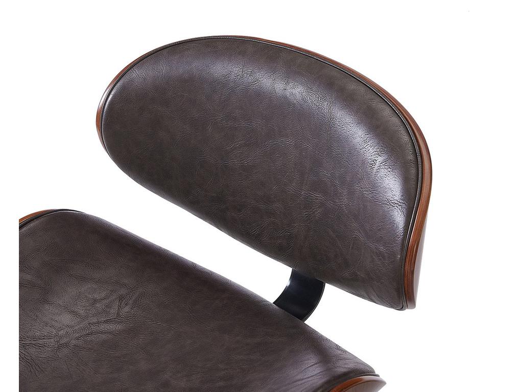 Цвет: коричневый/черный Ширина 52.5см * Глубина 51.5см * Высота стула 92.5-114.5см Высота сидения:63-85см Сиденье из гнутой фанеры, покрытой натуральным шпоном ореха/экокожа, ножка черный матовый металл.