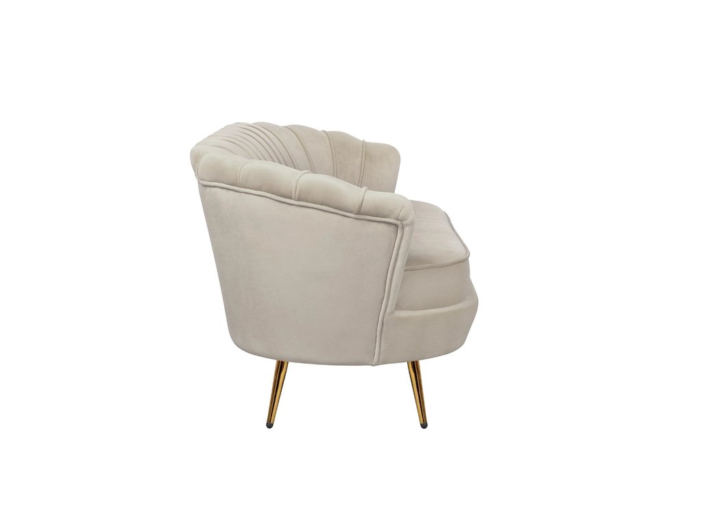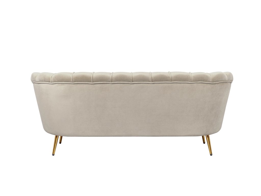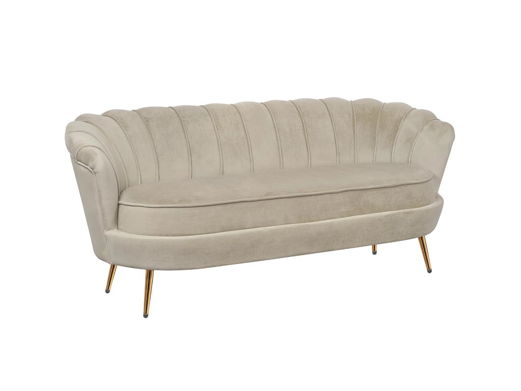Коричневый диван с обивкой из велюра Pearl triple taupe на основе каркаса из натурального дерева, с бархатистой велюровой обивкой, декорированной продольными стежками на внутренней стороне спинки. Модель выполнена в коричневом цвете, по форме напоминает створку раковины, огибающей жемчужину – круглую подушку для сидения. Короткие металлические ножки с блестящей золотистой поверхностью расходятся в виде лучей под небольшим наклоном к основанию. Мебель роскошно выглядит и подходит для оформления элитных интерьеров. Высота сидения 49 см. Глубина места для сидения 56 см. Ширина места для сидения 155 см. Высота спинки 30 см. Требуется сборка. Вес 30 кг.